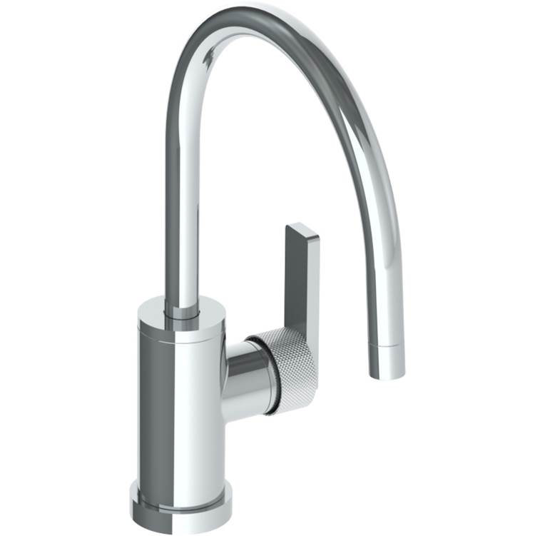 WATERMARK 70-7.3G-RNK8-SN RAINEY 13 1/8 INCH SINGLE HOLE DECK MOUNT GOOSENECK KITCHEN FAUCET, SATIN NICKEL, KNURL HANDLE