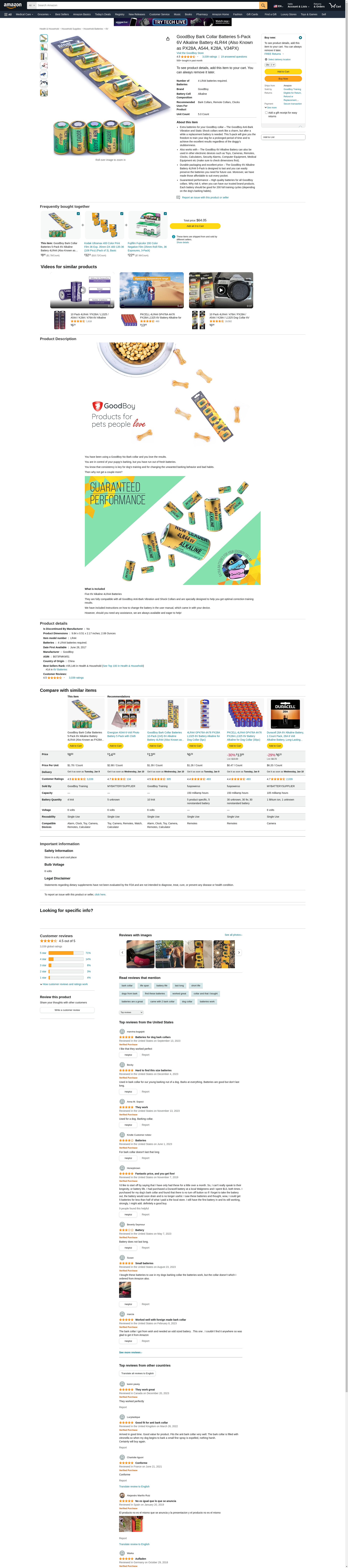 Bark Collar Batteries by GoodBoy 5-Pack 6V Alkaline Battery 4LR44 (Also Known as PX28A, A544, K28A, V34PX): Maxedbuy.com