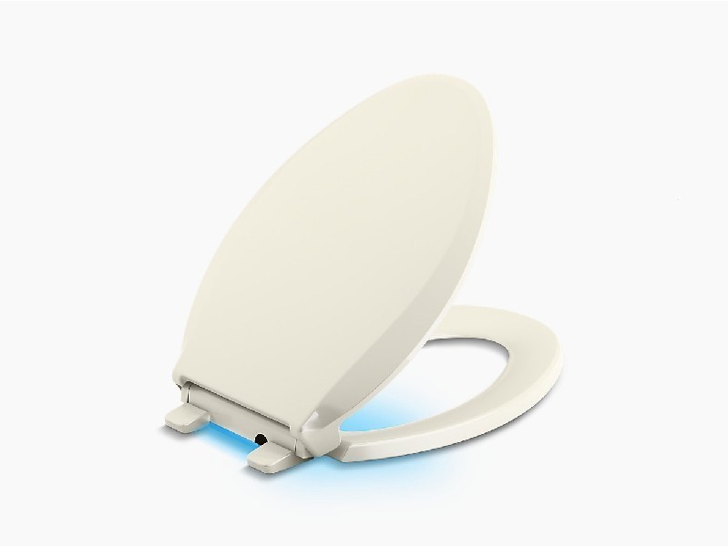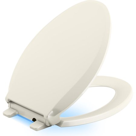 KOHLER 75796-96 Cachet Nightlight Quiet-Close with Grip-Tight Elongated-Front Toilet Seat, Biscuit