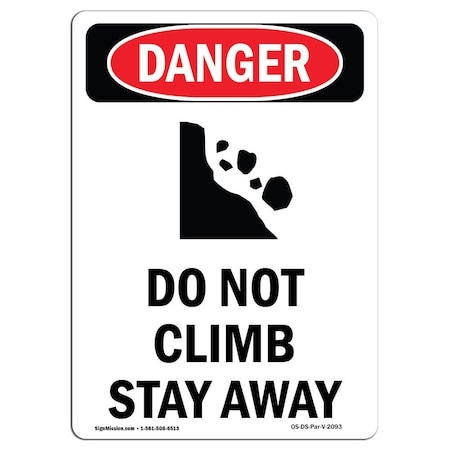 OSHA Danger Sign, Do Not Climb Stay Away, 14in X 10in Rigid Plastic