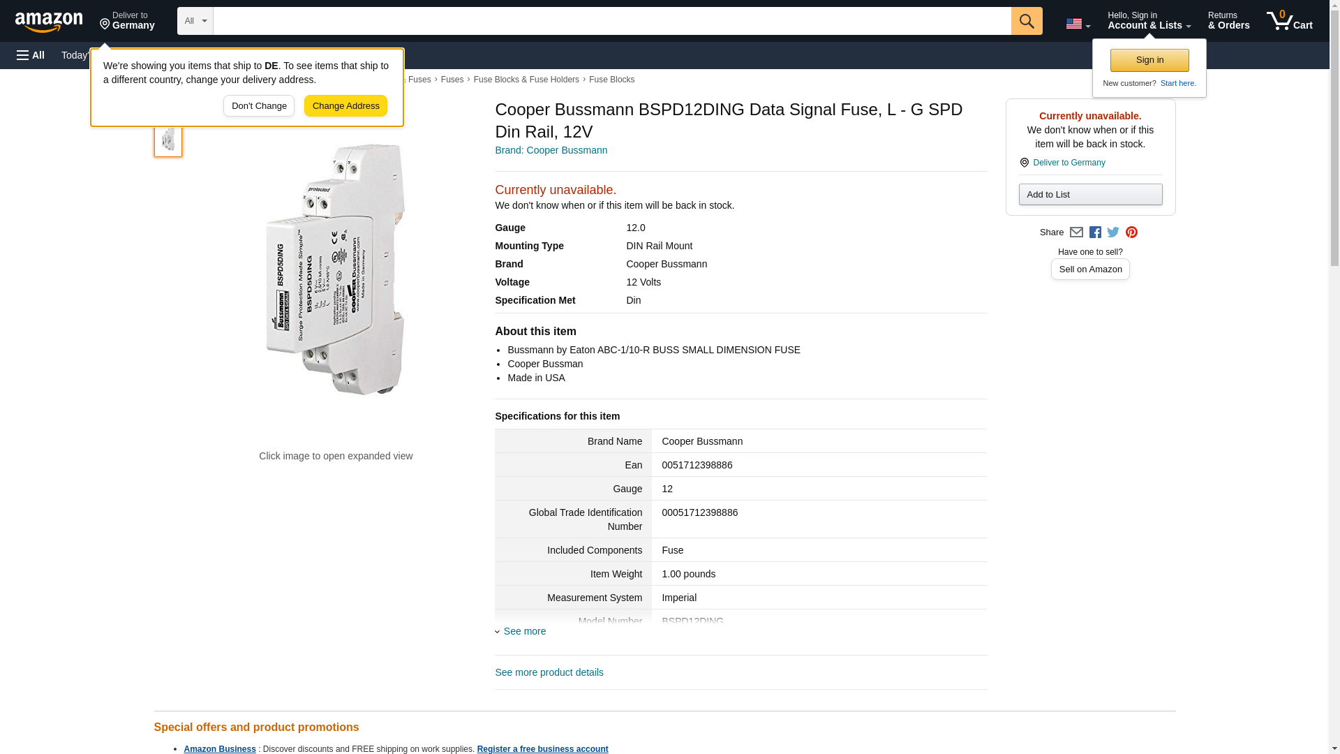 Cooper Bussmann BSPD12DING Data Signal Fuse, L - G SPD Din Rail, 12V