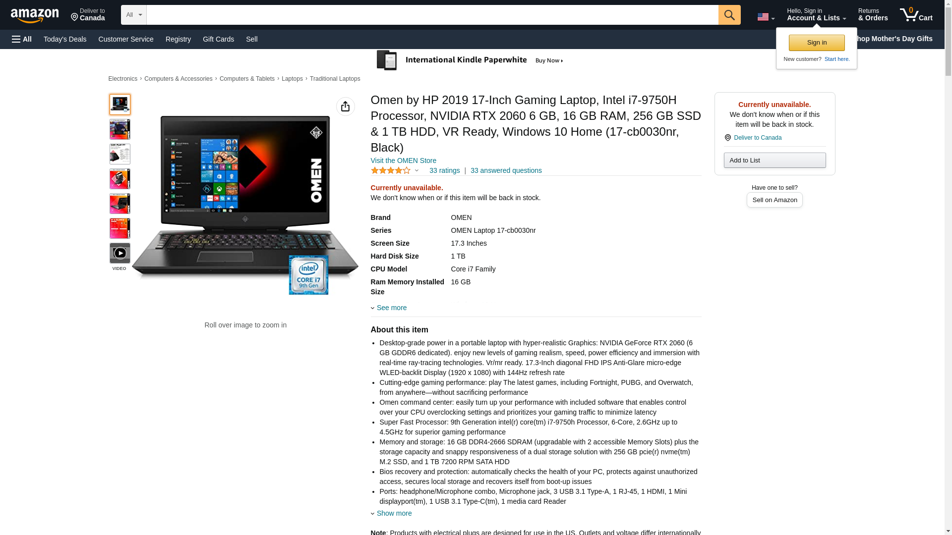 Omen by HP 2019 17-Inch Gaming Laptop, Intel i7-9750H Processor, NVIDIA RTX 2060 6 GB, 16 GB RAM, 256 GB SSD & 1 TB HDD, VR Ready, Windows 10 Home (17-cb0030nr, Black)