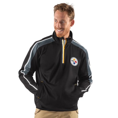 Get in the game this season with this Pittsburgh Steelers BlackDiscover Half Zip Pullover Jacket! It features Pittsburgh Steelers graphics along with two front pockets. This jacket will be perfect for cheering on your Pittsburgh Steelers in the stands or during casual day-to-day activities. Material: 100% Polyester Lightweight jacket suitable for mild temperatures Tagless collar Two pockets at waist Embroidered graphics 1/2-Zip Machine wash, dry flat Officially licensed