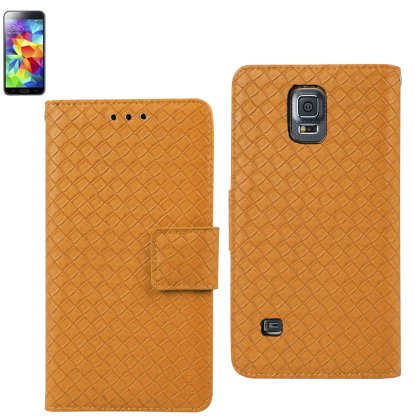 Reiko 3 in 1 Braided Pattern Wallet Case for Samsung Galaxy S5 - Retail Packaging - Yellow