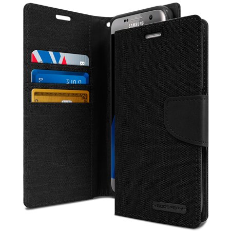 Galaxy S7 Edge Case, [Drop Protection] GOOSPERY Canvas Diary [Denim Material] Wallet Case [ID Card/Cash Slot] with Stand Flip Cover TPU Casing for Samsung Galaxy S7 Edge (Black) S7E-CAN-BLK