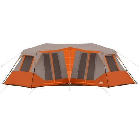 <b><br /><br />Ozark Trail 23' x 11'6" Instant Double Villa Cabin Tent, Sleeps 8, Orange:</b> <ul> <li>Sets up in under 2 minutes</li> <li>No assembly required; poles pre-attached to tent</li> <li>Sleeps 8</li> <li>Fits 2 queen airbeds</li> <li>Double cabin footprint connected by large gear organizer</li> <li>Each cabin sleeps 4 campers</li> <li>Covered front and back porch space with large gear organizer</li> <li>10 large windows and mesh panel ceilings for amazing views and great ventilation</li> <li>Front and back doors on each cabin for easy tent access</li> <li>Includes rainfly with factory sealed seams</li> <li>2 electrical cord access points</li> <li>Large gear organizer included</li> <li>Carry bag included</li> <li>Tent stakes included</li> <li>Measures 23' x 11'6"</li> <li>Height: 76"</li> <li>Construction: polyester, steel</li> <li>Model# WMT-221176B</li> </ul>