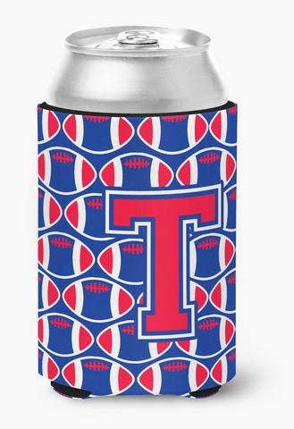 Carolines Treasures CJ1076-TCC Letter T Football Harvard Crimson & Yale Blue Can or Bottle Hugger