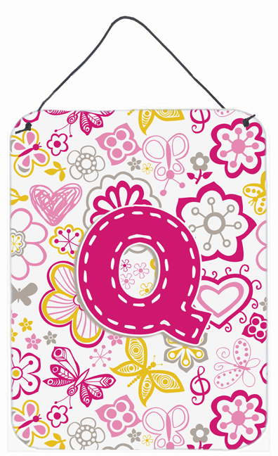 Carolines Treasures CJ2005-QDS1216 Letter Q Flowers And Butterflies Pink Wall and Door Hanging Prints