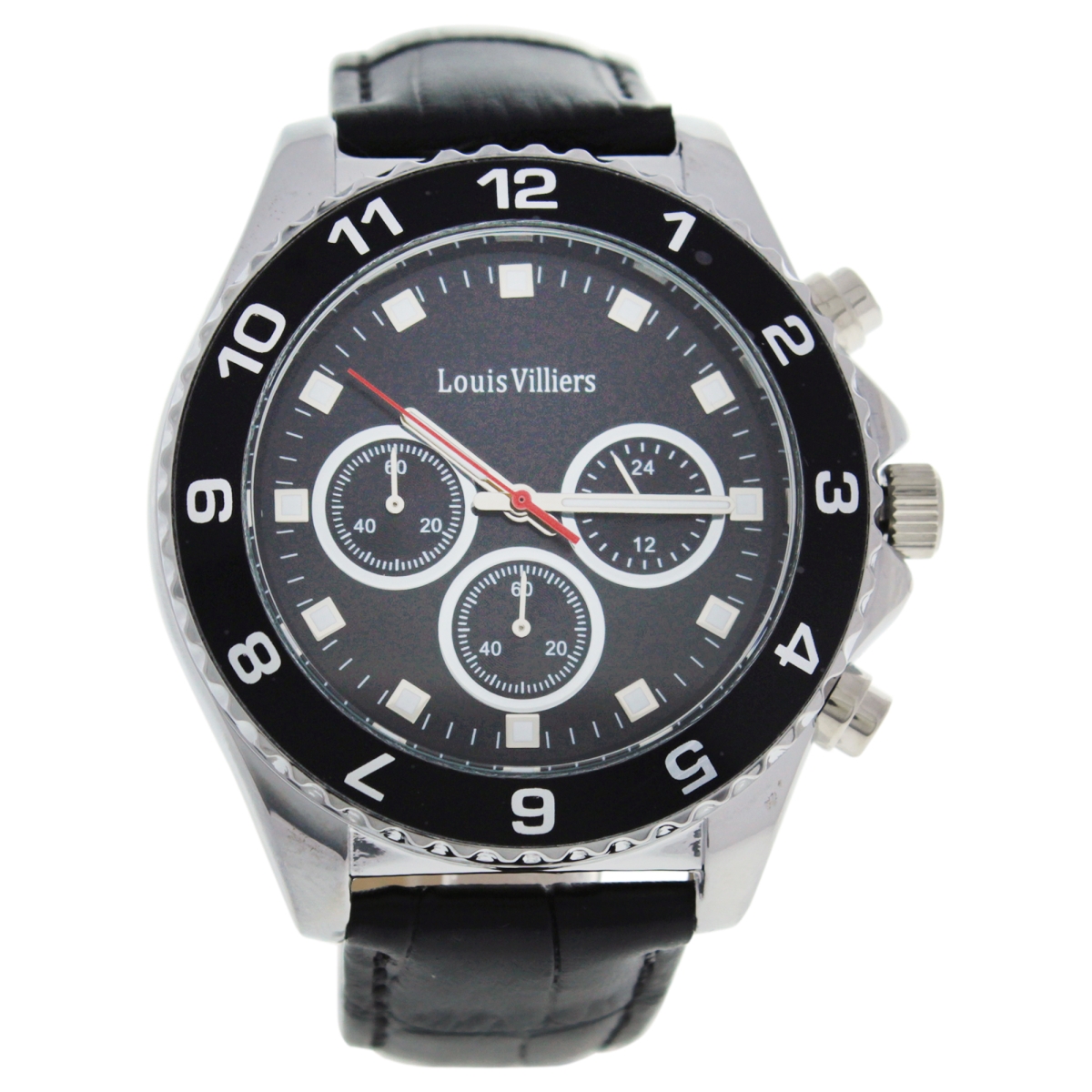 Louis Villiers M-WAT-1319 LVAG5877-4 Leather Strap Watch for Men, Black&Silver