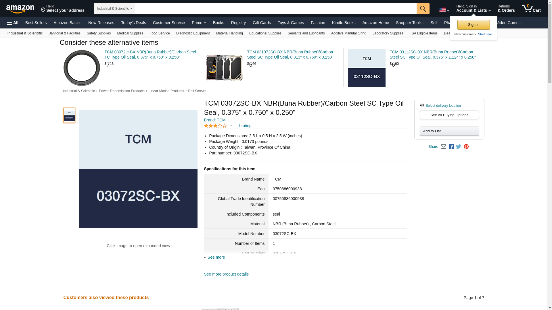 TCM 03072SC-BX NBR(Buna Rubber)/Carbon Steel SC Type Oil Seal, 0.375" x 0.750" x 0.250"