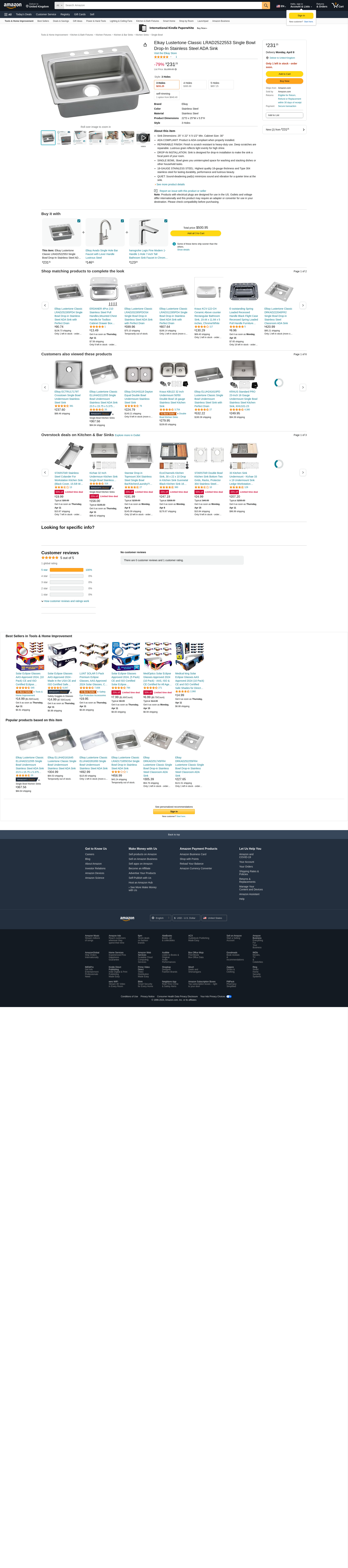 | ELKAY-LRAD2522553 | 1 | 1 | 1 @ $528.60 |
