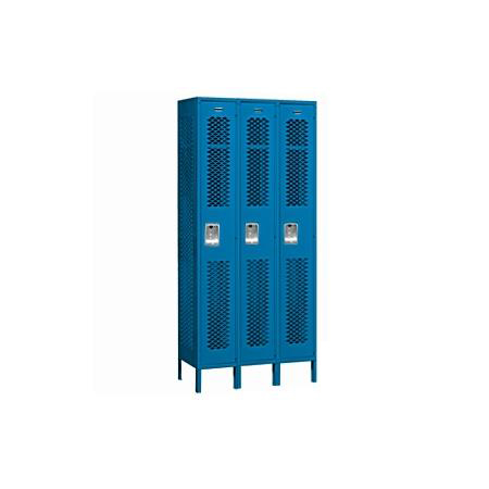 Salsbury Industries Assembled 1-Tier Vented Metal Locker with Three Wide Storage Units, 6-Feet High by 12-Inch Deep, Blue