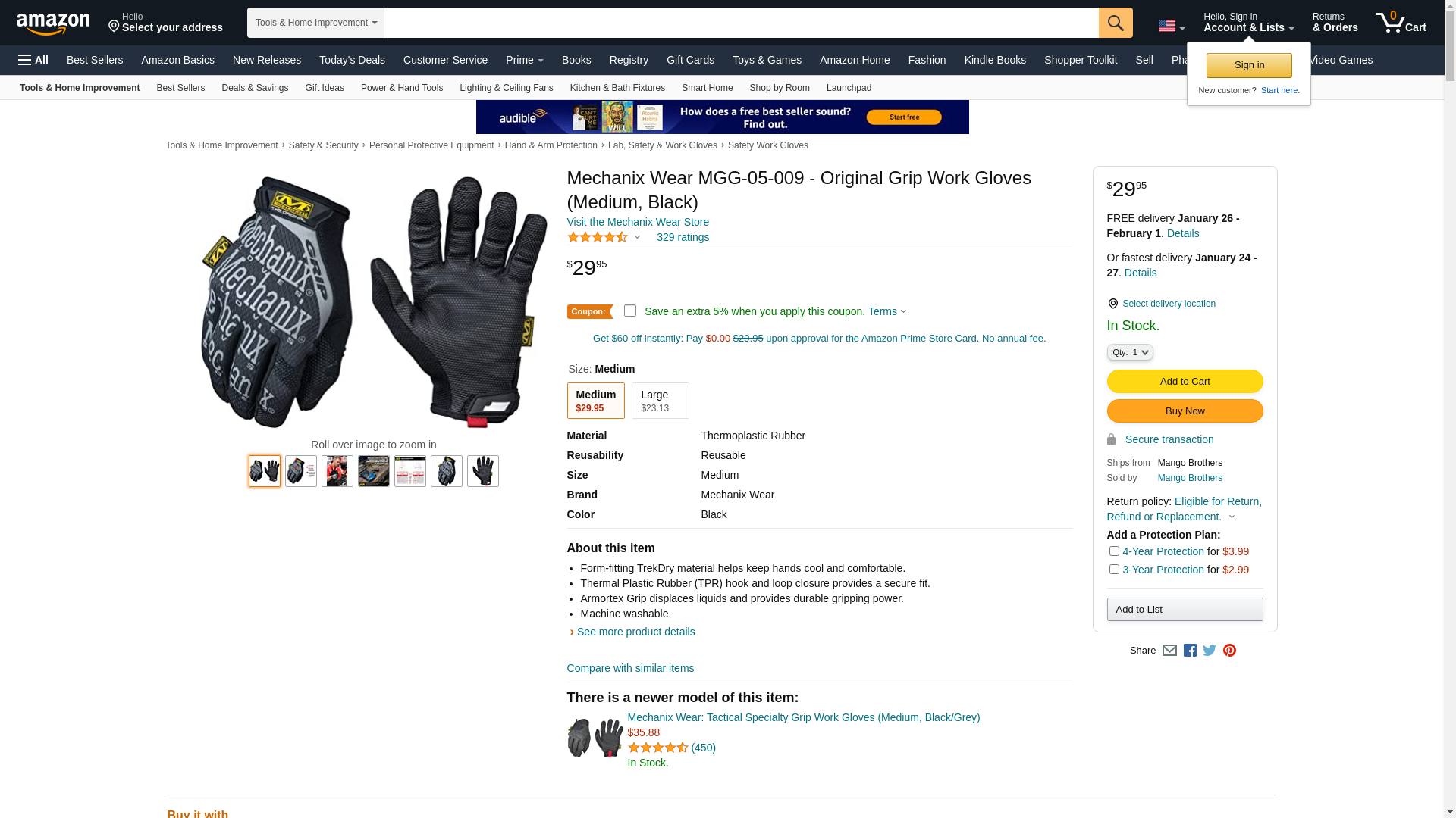 | ToolUp.com | MECHANIX MGG-05-012 | 1 | 1 | 1 @ $27.30 | |