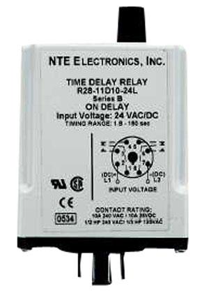 NTE Electronics R28-11A10-120K Series R28 Adjustable Delay on Operate Time Delay Relay, AC Operated, DPDT, 0.1 to 10 Second Range, 10 Amp, 8 Pin, 120VAC
