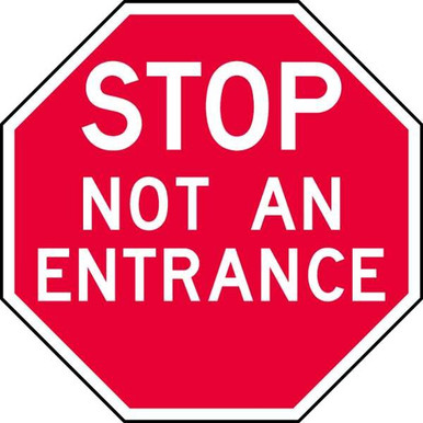 | Feature | <b>Price For:</b> Each <b>Thickness</b>: 0.063" <b>Header</b>: No Header <b>Background Color</b>: Red <b>Material</b>: Aluminum <b>Sign Shape</b>: Octagon <b>Language</b>: English <b>Glow-in-the-Dark</b>: No <b>Operating Temp. Range</b>: -30 Degrees to 200 Degrees F <b>Retroreflective Grade</b>: High Intensity Prismatic <b>Double-Sided</b>: No <b>Legend Style</b>: Text <b>UV Resistant</b>: Yes <b>Legend Color</b>: White <b>Legend</b>: Stop Not An Entrance |