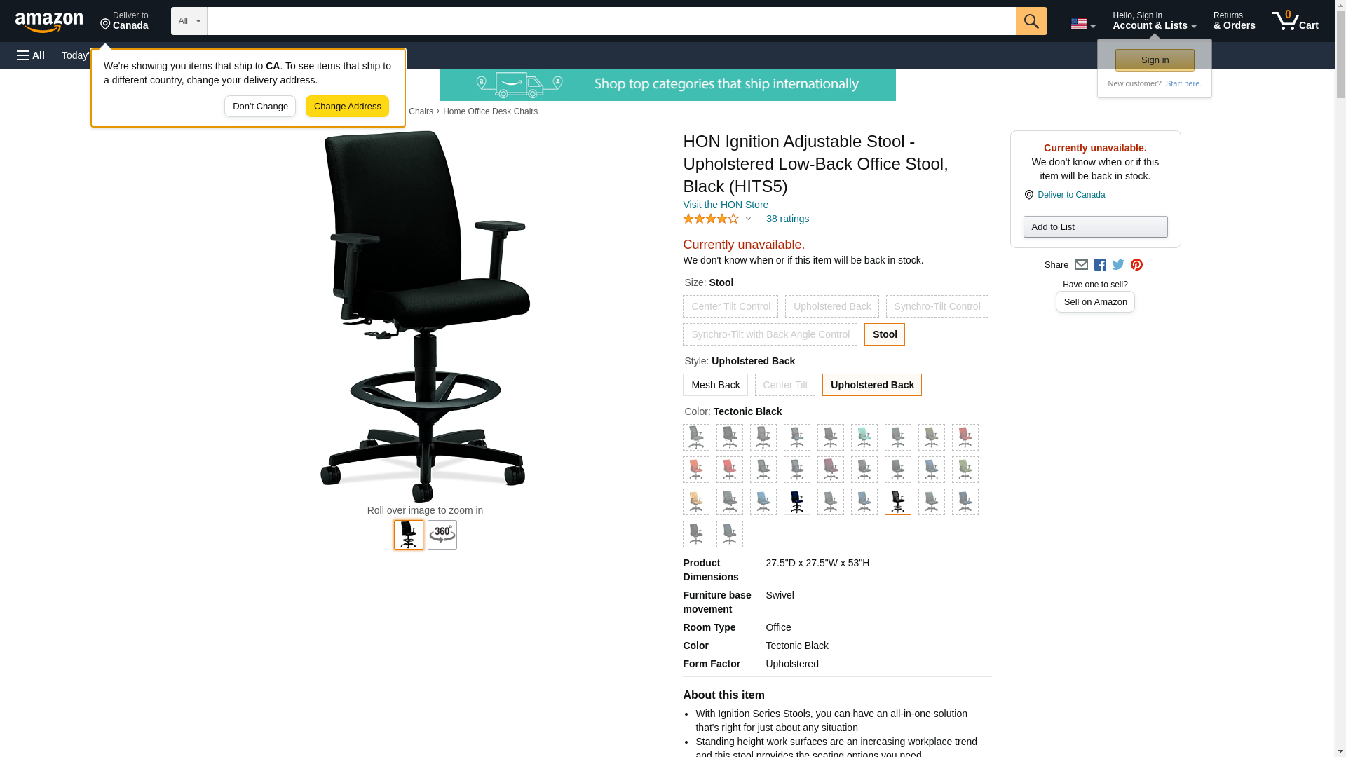 HON Ignition Adjustable Stool - Upholstered Low-Back Office Stool, Black (HITS5)