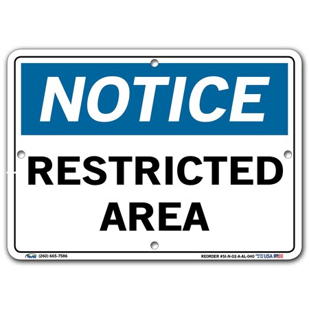 Vestil SI-N-02-A-AL-040 Notice Sign Aluminum .040" Overall Size 10.5"W x 7.5"H Restricted Area , 7.5" Height, 10.5" Wide, 0.04" Length