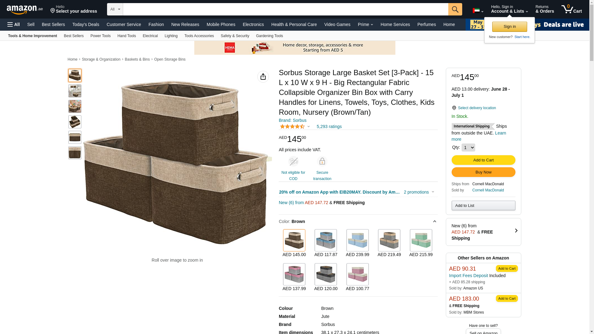 Sorbus Storage Large Basket Set [3-Pack] - 15 L x 10 W x 9 H - Big Rectangular Fabric Collapsible Organizer Bin Box with Carry Handles for Linens, Towels, Toys, Clothes, Kids Room, Nursery (Brown/Tan): Maxedbuy.com