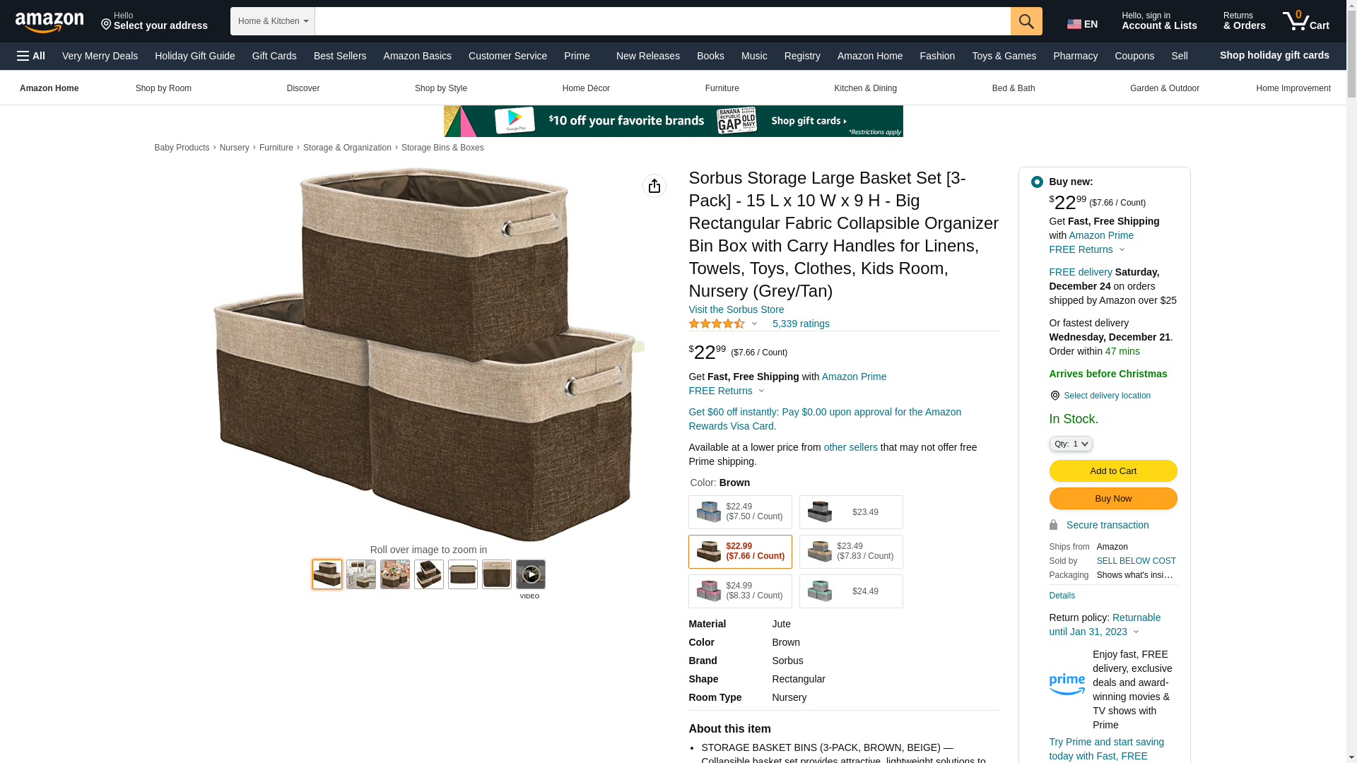 <b> From household items to unruly toys, store some of the most common clutter with decorative organizer baskets.</b><br> <br> Keep a place for everything, with everything in place! The Sorbus Storage Basket Bin Set features a classic neutral pattern with two side carry handles and collapsible frame. Itβs ideal for keeping household essentials tidy on any shelf, floor, or tabletop. Store clothes, books, toys, holiday items, and much more for seamless organization. The portable carry handles make it easy to lift and tote anywhere from a baby nursery, cube organizer shelf, or closet for seasonal storage. <br><br> <b>Portable and versatile for any room in the home, office, or dorm.</b><br> <br> Transform your living space with cleverly displayed basket bins filled with magazines, blankets, and gadgets or store your favorite supplies for a chic sewing station. In the playroom, create decorative kids storage where Legos, books, and dolls have grey toy bins to call home. Baskets are lightweight, sturdy, and easy for kids to place on the floor to grab their favorite toy. For a tidy office, store mail, stationary, notebooks, and more. The possibilities are endless! <br><br> <b>A space-saving design collapses flat for easy storage.</b><br> <br> Features a rectangular shape with rounded corners. Soft flexible material allows baskets to collapse flat when not in use. Neutral color palette coordinates with most dΓ©cor. Made of Cotton & Jute fabric and lined with linen interior. Durable structure for heavy items. Easy to clean with dry or damp cloth. Measures approximately 15β L x 10.75β W x 9.50β H<br><br>