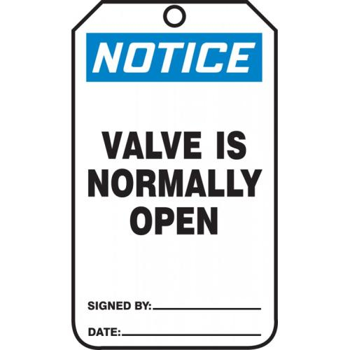 Order MDT807PTM by Accuform RP-Plastic Tag "Valve is Normally Open" - US Mega Store