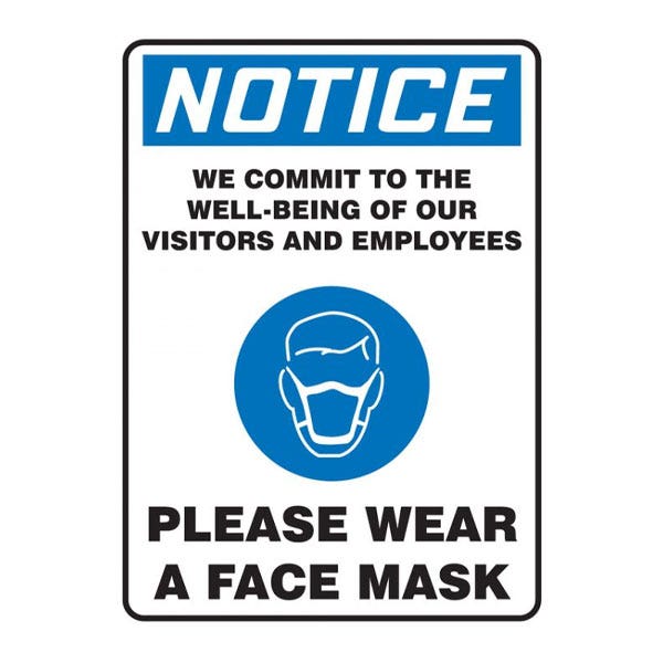 Accuform OSHA Notice Safety Sign: We Commit To The Well Being Of Our Visitors And Employees Please Wear A Face Mask - Dura-Plastic (10" x 7") MPPA830XT - Filmtools