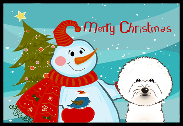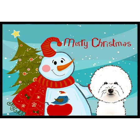 Snowman With Bichon Frise Indoor and Outdoor Mat- 24 x 36 in.