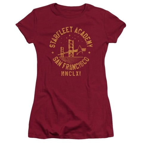 Trevco Star Trek-Collegiate Bridge - Short Sleeve Junior Sheer Tee - Cardinal, Large
