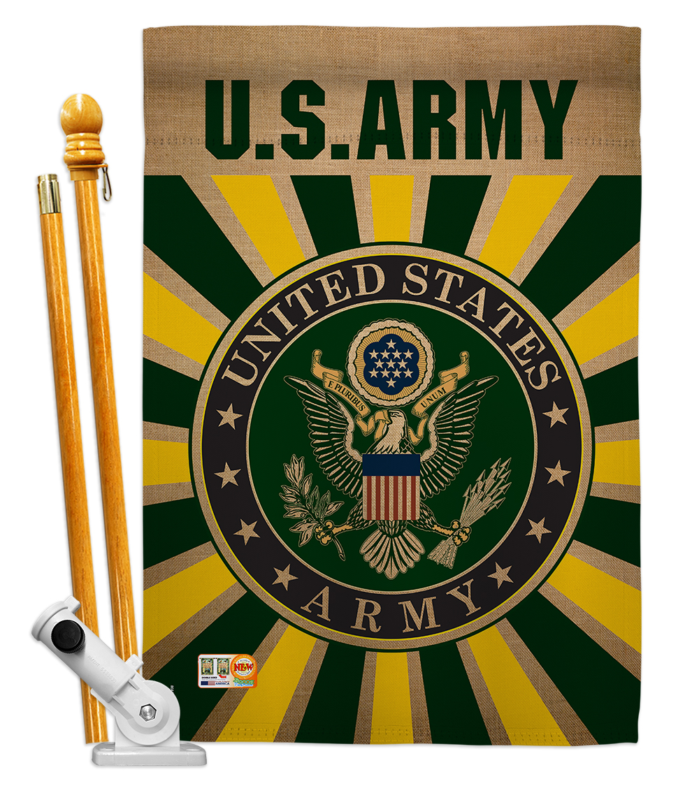 - Army Americana Military Impressions Decorative Vertical Double Sided House Flag Set with Pole Bracket
