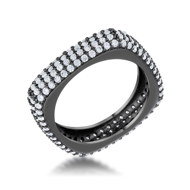 Jgoodin R08543B-C01-09 Womens Jana 1.29 CT Cubic Zirconia Hematite Contemporary Square Band Ring - Size 9