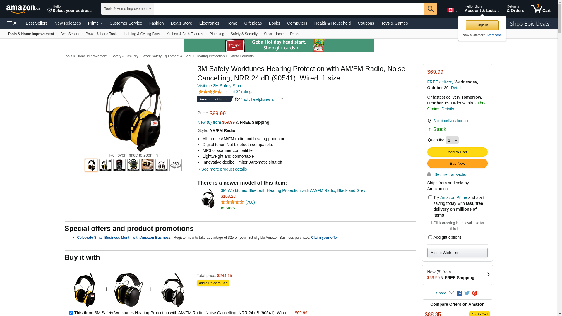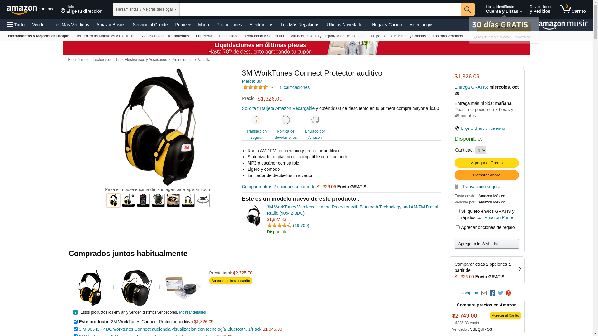 (3M 90541-00000V) (3M ID Number 70006902277) 3M(TM) Tekk Protection(TM) Worktunes(TM) Earmuff 90541-00000V [You are purchasing the Min order quantity which is 3 PACKAGES]