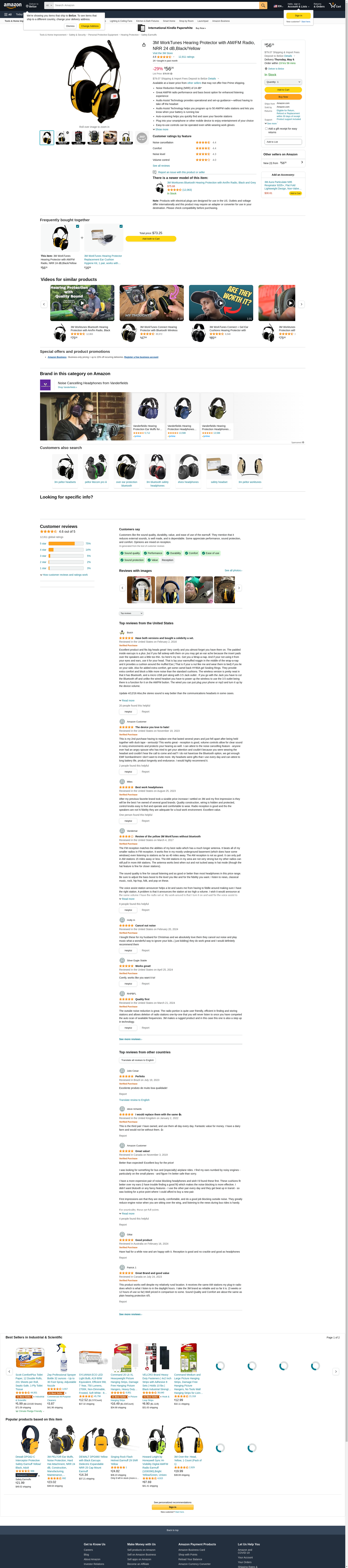 3M WorkTunes Hearing Protector with AM/FM Radio, NRR 24 dB,Black/Yellow