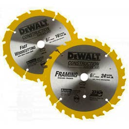 DeWalt Saw Blades are ideal for any wood-cutting application. The exclusive, patent-pending ToughTrack tooth design, on our framing & ripping blades, is engineered to deliver straight, accurate cuts over the life of the blade. Patented Body Slots reduce vibration, which works with the blade's thin kerf design to deliver exceptional user feel. High-Density Tungsten Carbide teeth are tough, wear-resistant, and provide long life. The reinforced shoulder is designed for strength & durability by providing impact resistance, especially in nail-embedded wood. These blades come with ToughCoat anti-stick coating to reduce friction and gumming. Optimized for use on both corded and cordless circular saws