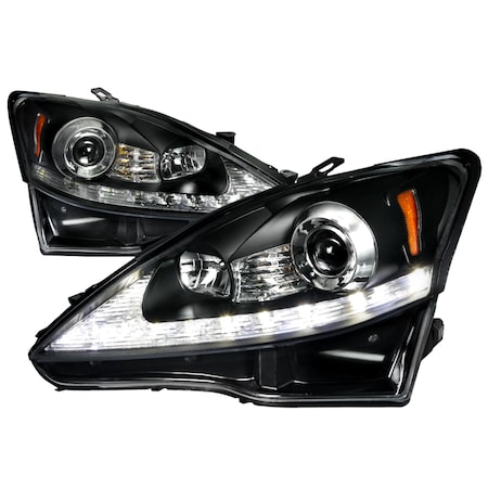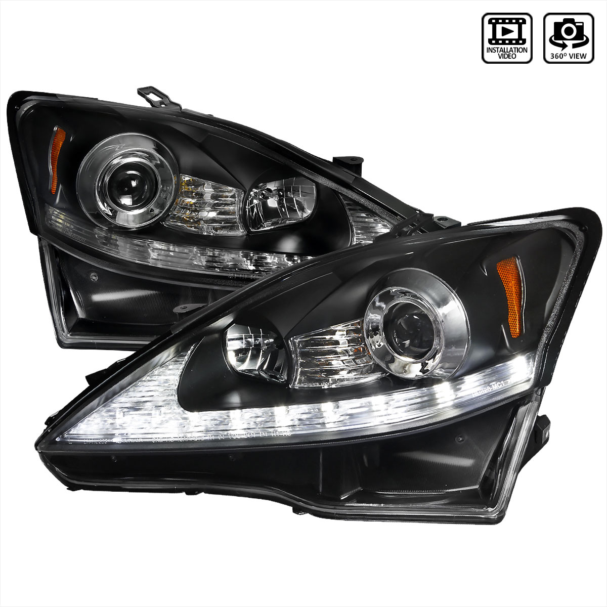 Spec-D Tuning 2LHP-IS25006JM-TM Lexus IS250 Black LED DRL+Turn Signal Strip Projector Headlights