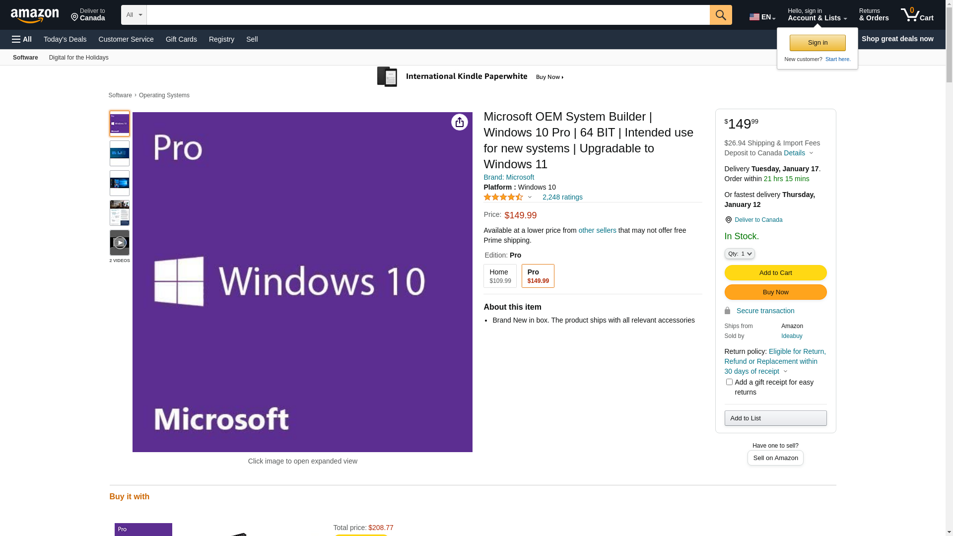 | Feature | Microsoft FQC-08930 Windows 10 Pro 64 Bit System Builder OEM |