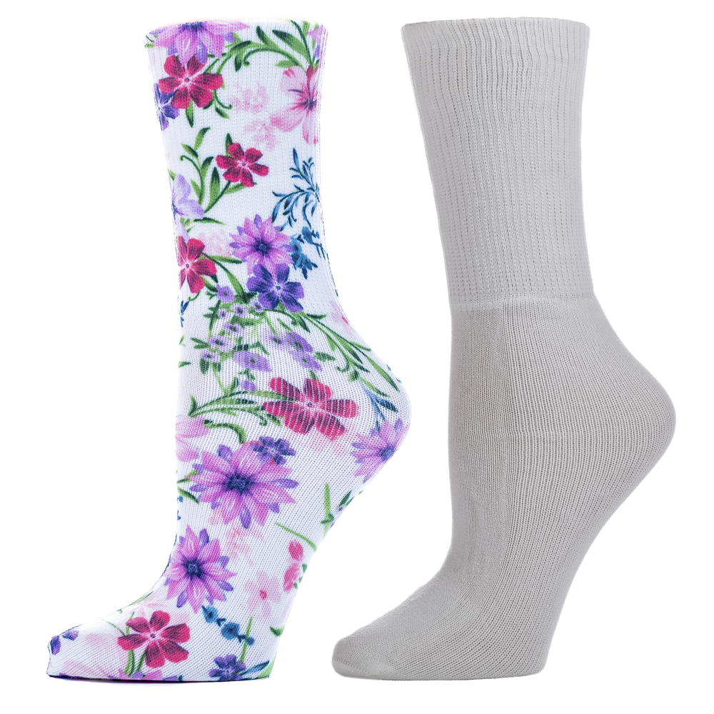 Celeste Stein Celeste-Stein-D-2211-WHT Womens Diabetic Crew Sock Set with Ode & White Pattern, Multi Color - Regular