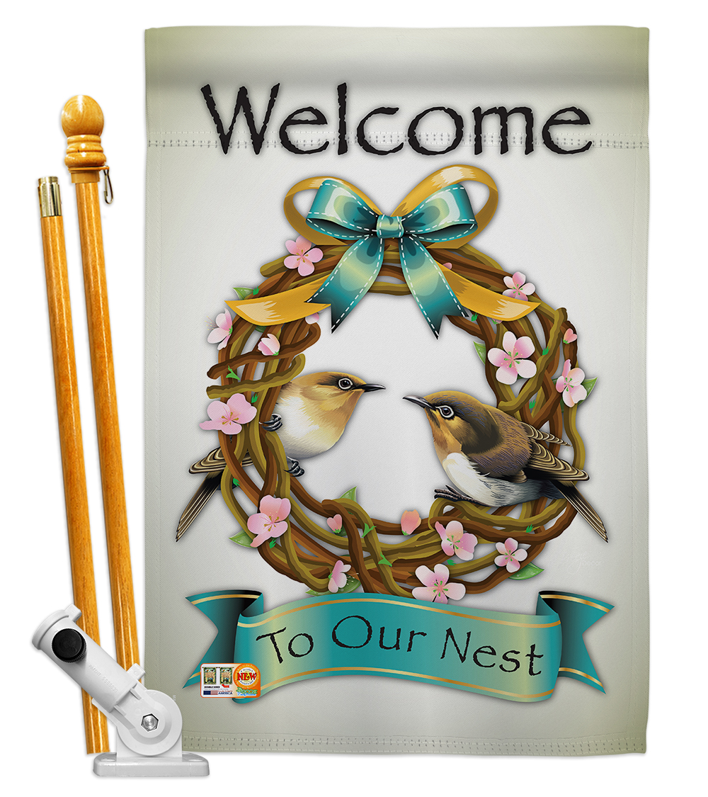 Breeze Decor HS100046-BO Welcome to Our Nest Inspirational Sweet Home Decorative Vertical House Flag Set, 28"x 40" w/Flagpole, Multi-Color