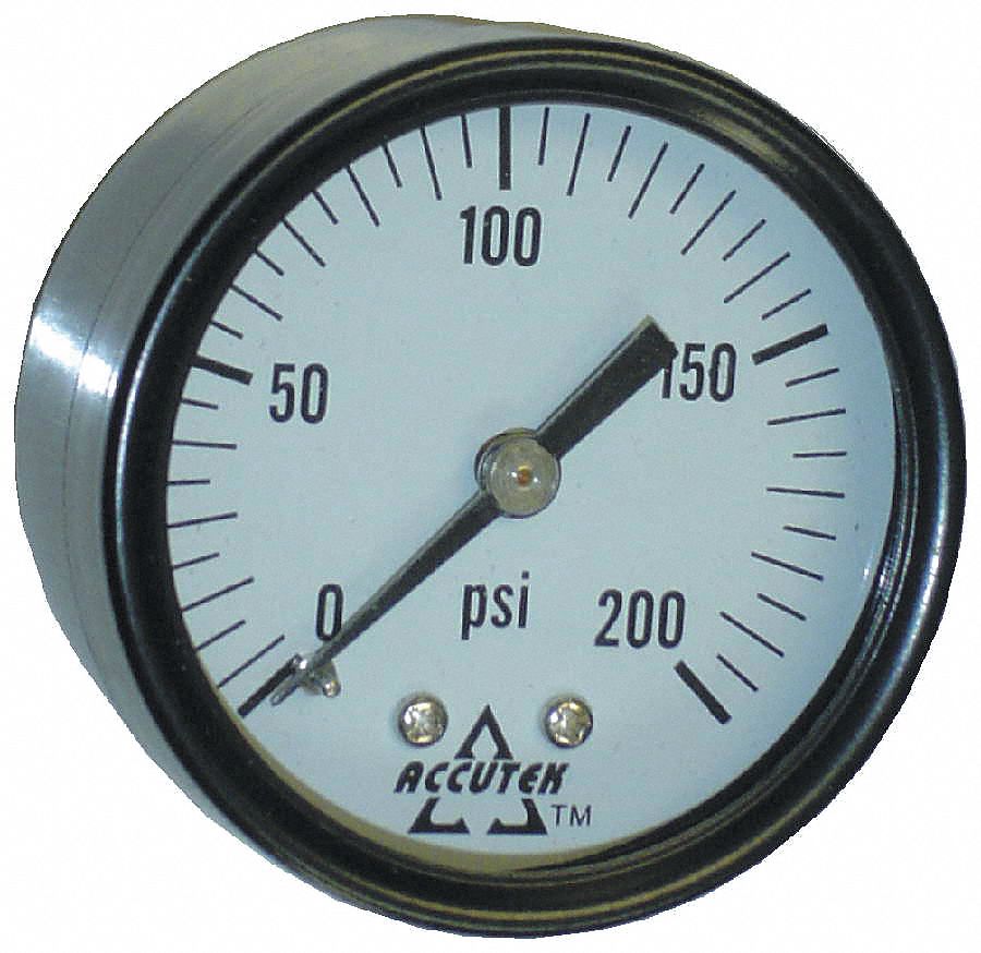 Accutek PG-200CD2 Dry Pressure Gauge, 0 to 200 psi Pressure, 1/4 in Connection, 2 in Dia Dial, -2%, -3%, 3% Accuracy (10 Each)