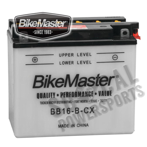 BikeMaster Yumicron CX Battery For Various Models (see specifications for exact fitments) - BB16-B-CX12-Volt dry batteries for more recent applications.Dealer must add acid (acid not included) and charge before installation.Delivers up to 30 percent more power (cranking amps) than Standard batteries due to extra plates inside battery.May need periodic refilling.6-month manufacturers warranty.