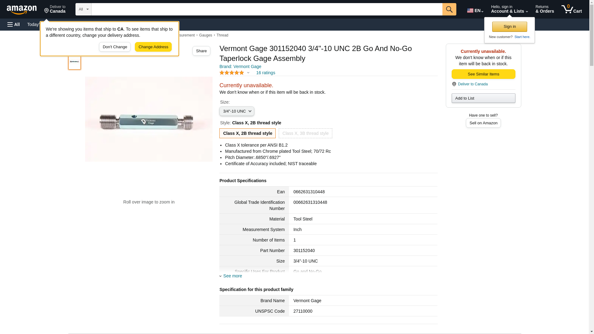 Vermont Gage 301152040, UNC Series Go/No-Go Gage Assembly, 3/4-10 (Pack of 2 pcs)