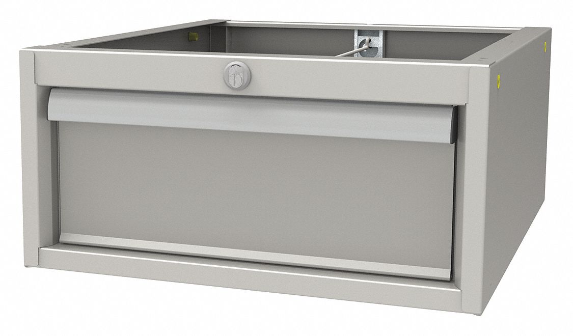 Drawer, Product Type Drawer, Assembly Unassembled, Color Gray, Finish Powder Coated, Includes (1) 5-3/4 in Drawer, Material Steel, Overall Depth 19 1/4 in, Overall Height 8 in, Overall Width 16 3/4 in