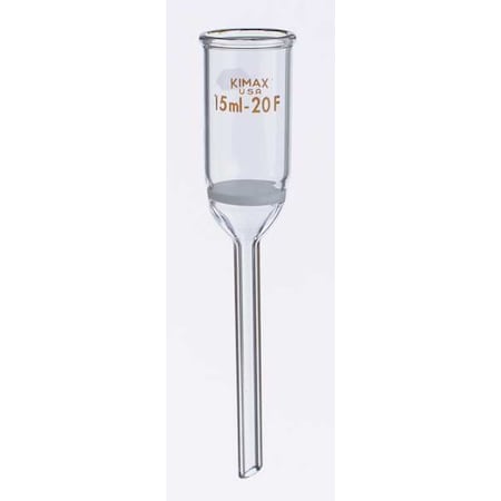FUNNEL WITH MARKING SPOT This Buchner KIMAX funnel is used wherever filter paper and membranes cannot withstand the chemical attack of the filtrate. Funnels are constructed with heavy-walled stems, and top rims are beaded for extra strength With a marking spot With KIMFLOW fritted disc Manufactured from 33 expansion, low extractable borosilicate glass conforming to USP Type I and ASTM E438, Type I, Class A requirements Capacity (mL) : 30 Disc Diameter (mm) : 30 Disc Porosity (microns) : 40-60 Height above Disc (mm) : 45 Length of Stem (mm) : 75 Stem ID (mm) : 4 Stem OD (mm) : 8 Shelf-Pack Qty : 1 Case Qty : 6