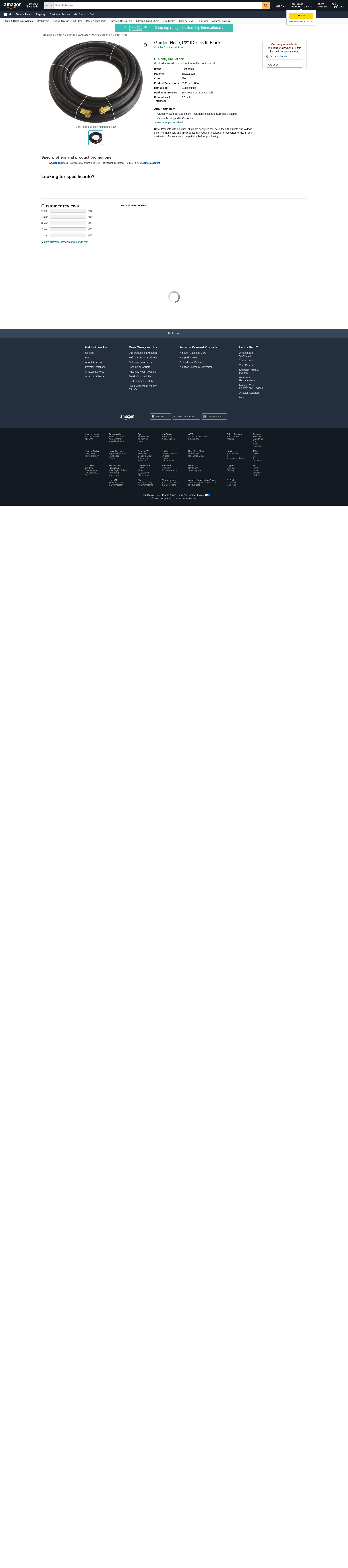 Continental Garden Hose,1-2" ID x 75 ft.,Black CWH050-75MF-G ZO-G6156340 - SIM Supply
