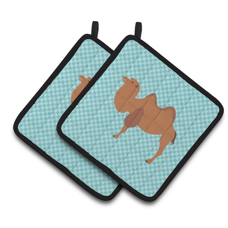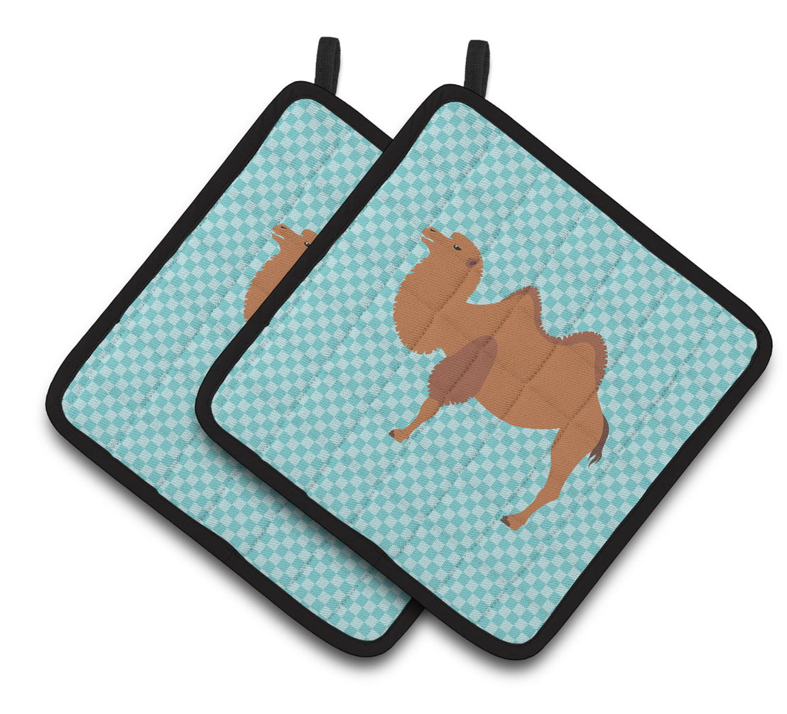 Caroline's Treasures BB7992PTHD Bactrian Camel Blue Check Pair of Pot Holders Kitchen Heat Resistant Pot Holders Sets Oven Hot Pads for Cooking Baking BBQ, 7 1/2 x 7 1/2