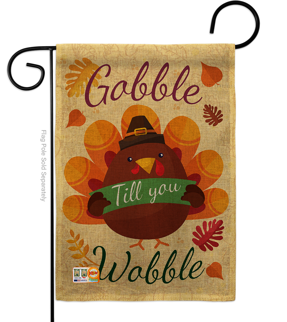 Breeze Decor BD-TG-G-113063-IP-DB-D-US17-BD 13 x 18.5 in. Gobble Till you Wabble Burlap Fall Thanksgiving Impressions Decorative Vertical Double Sided Garden Flag