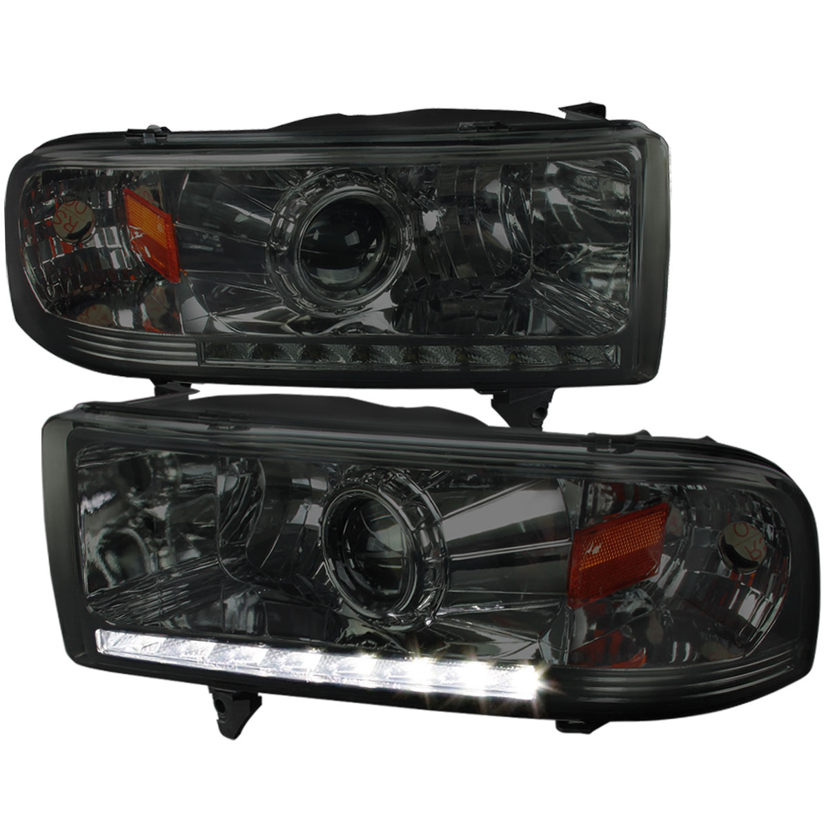 Spec-D Projector Headlights w/ LED Light Strips (Chrome Housing/Smoke Lens) Dodge RAM 1994-2001 | 2LHP-RAM94G-RS