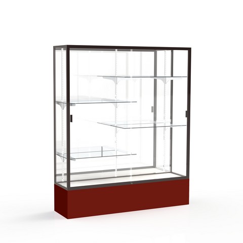 Waddell Spirit Mirror Back Display Case, 60W by 72H by 16" D, Dark Bronze Finish with Maroon Base