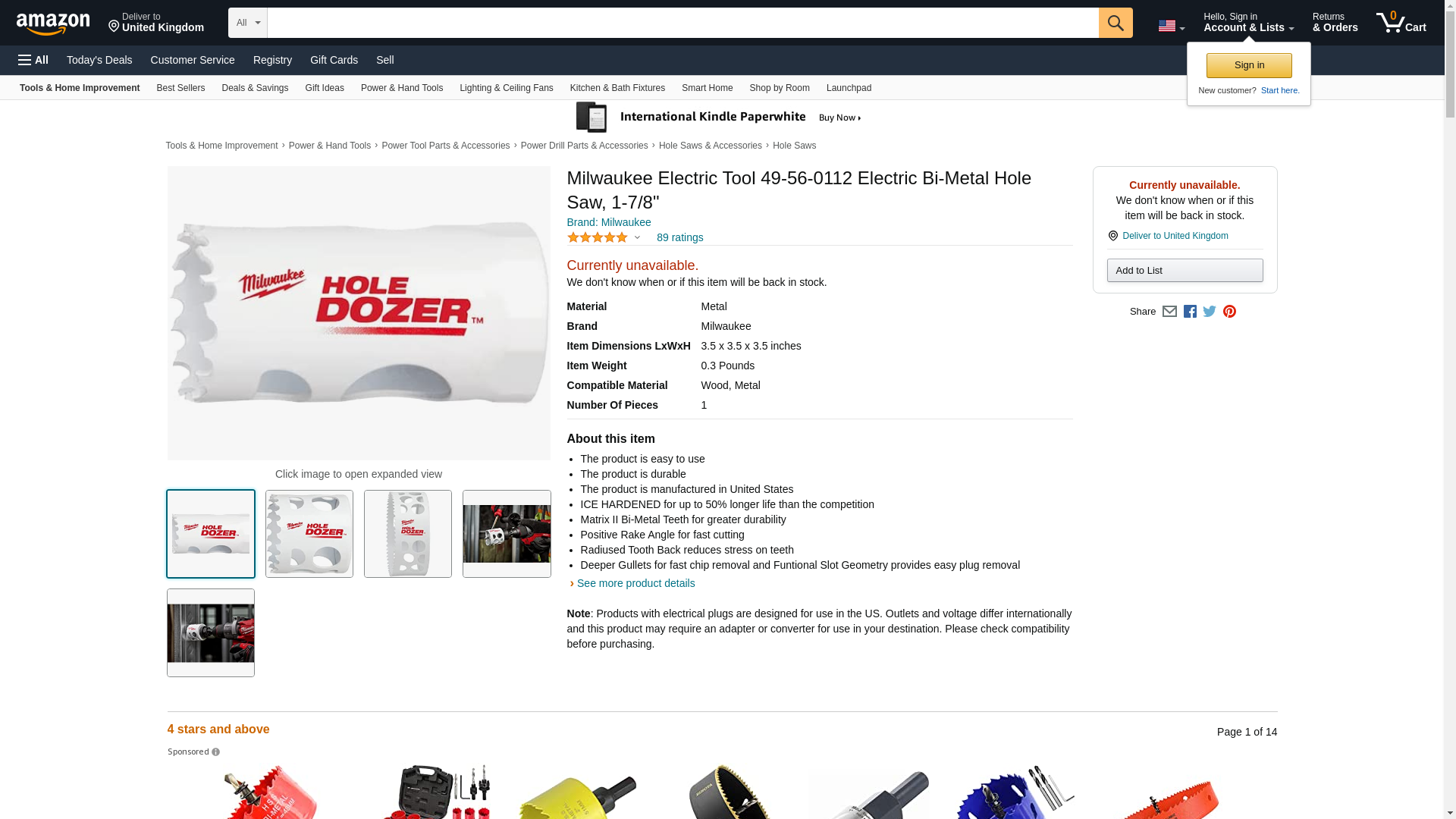 Milwaukee Electric Tool 49-56-0112 Electric Bi-Metal Hole Saw, 1-7/8"