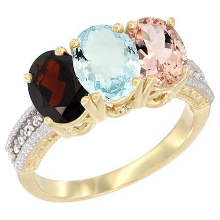 10K Yellow Gold Diamond Natural Garnet, Aquamarine & Morganite Ring 3-Stone 7x5 mm Oval, sizes 5 - 10