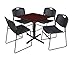 Cain 30" Square Breakroom Table- Mahogany & 4 Zeng Stack Chairs- Black