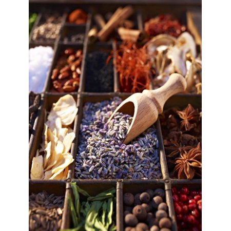 <ul> <li>Title: Dried Lavender Flowers with Various Spices in a Seedling Tray</li> <li>Artist: Oliver Brachat</li> <li>Product Type: Photographic Print</li> </ul>